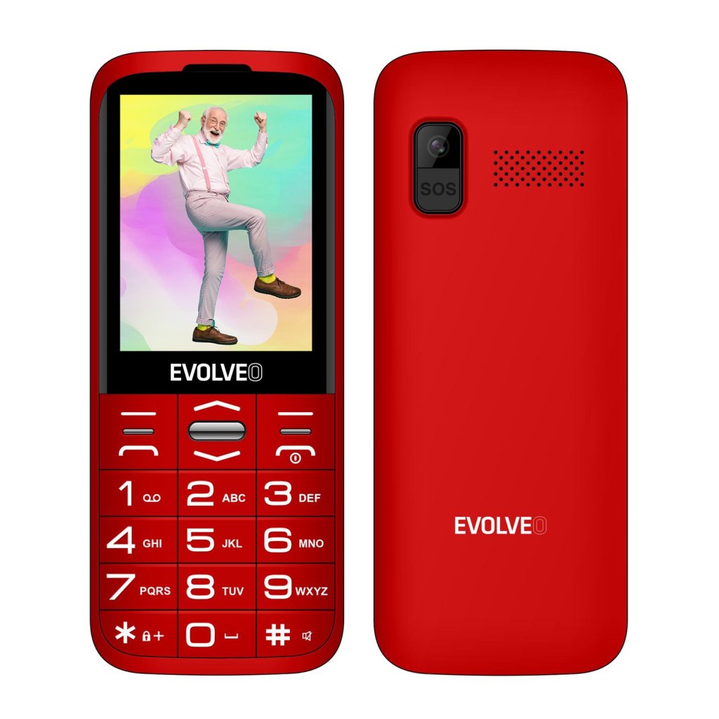 EVOLVEO EasyPhone XO, mobilný telefón pre seniorov s nabíjacím stojanom (červený)