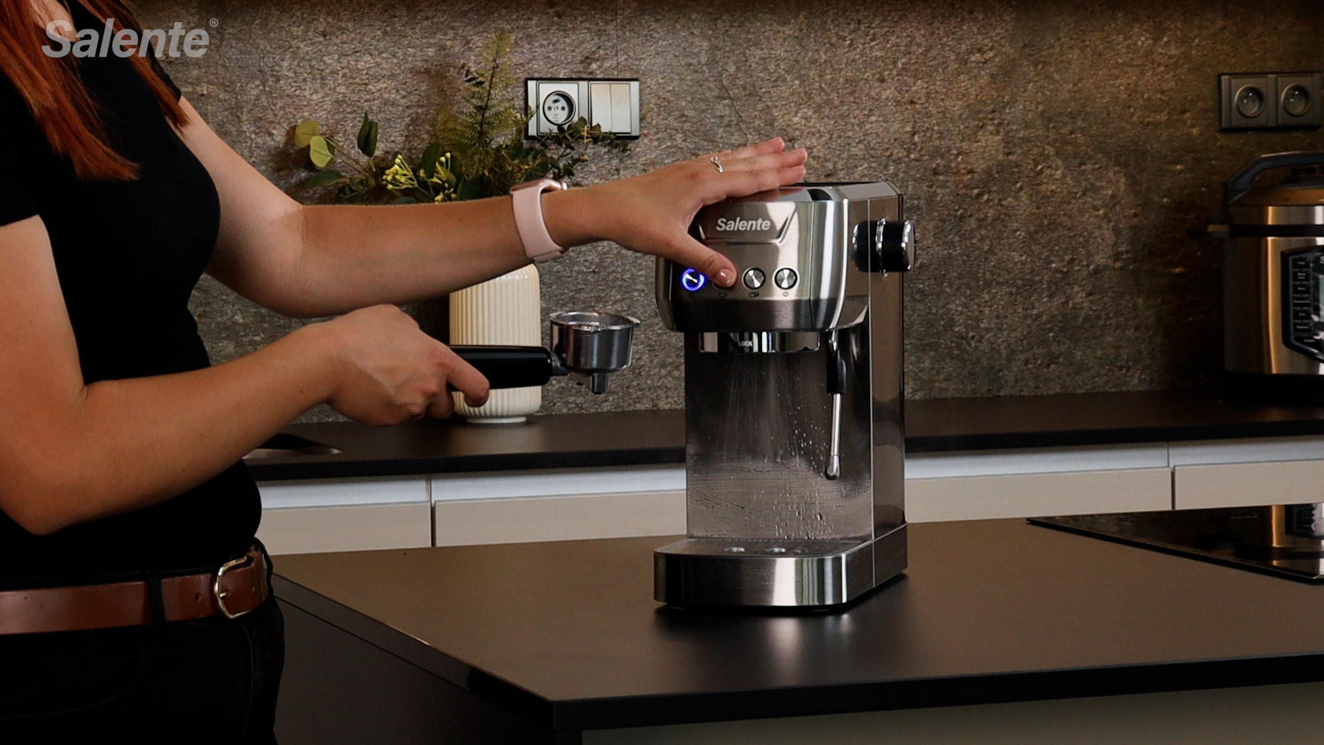 - Prepláchnite páku čistou vodou bez kávy, aby sa vyplákli usadeniny z filtra.