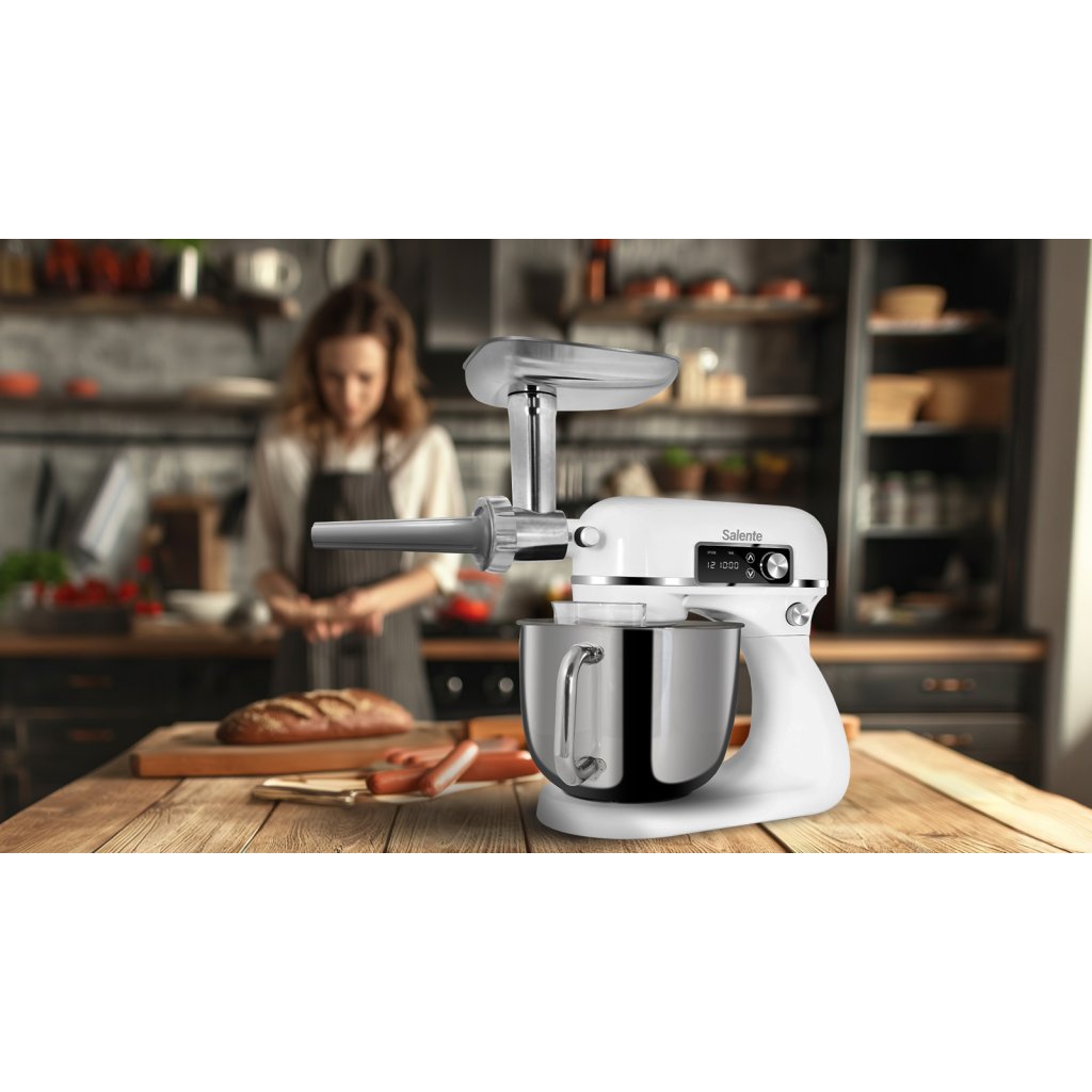 Salente DigiChef+, kuchynský robot, 6-litrová misa, celokovový, mlynček na mäso, digitálny displej, biely
