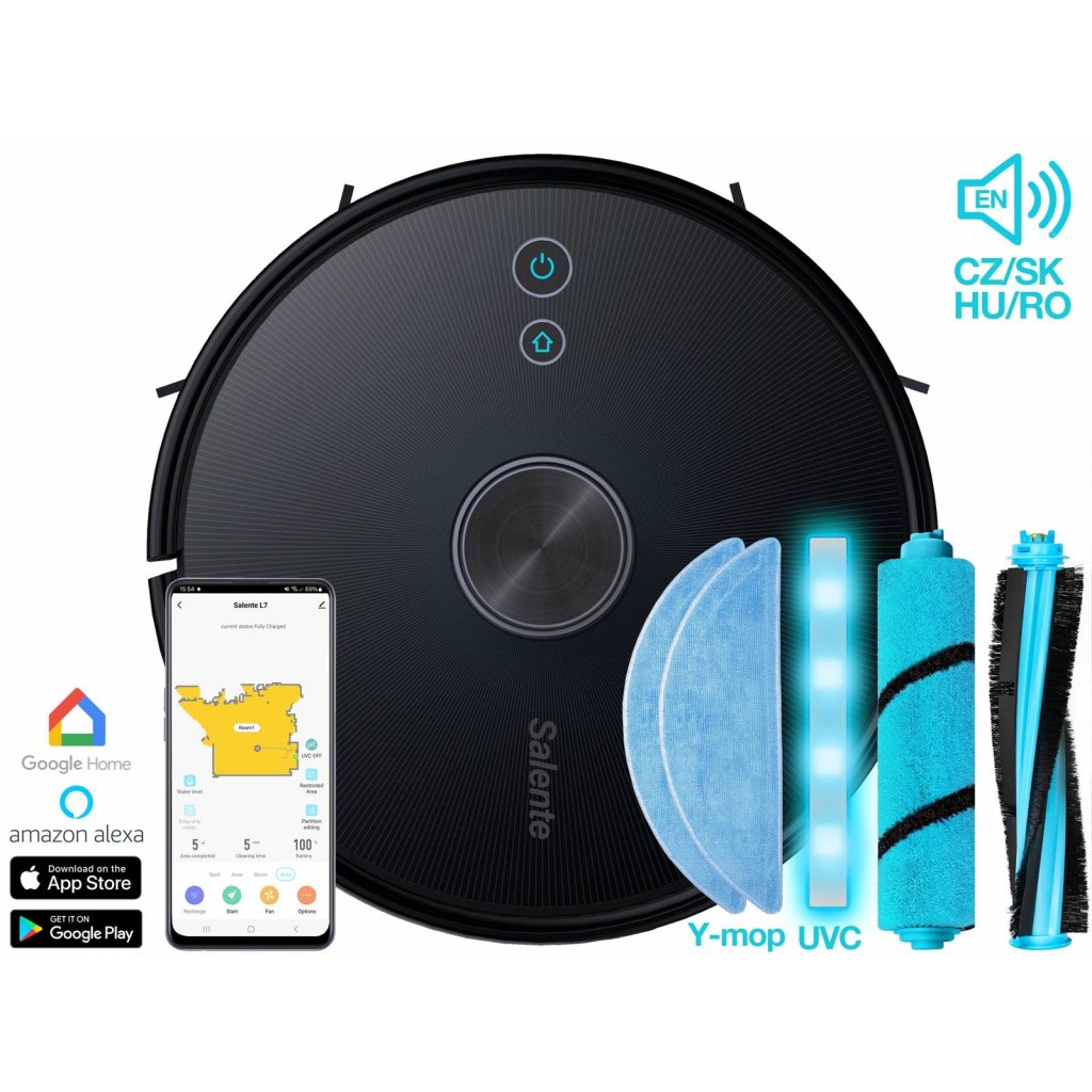 Salente L7 je vďaka 360° radaru schopný zaistiť veľmi efektívne a rýchle upratovanie. Neprechádza opakovane uprataný priestor a pokračuje v upratovaní z miesta, kde bolo prerušené. O svojom stave informuje hlasovými povelmi v slovenčine a s mobilnou aplikáciou ho môžete ovládať kdekoľvek. Vstavaná UVC LED lampa zbaví uprataný priestor vírusov, baktérií a ďalších choroboplodných zárodkov a nový režim Y-mop zaistí ešte efektívnejšie upratovanie. Súčasťou balenia je aj špeciálny penový valec na jemný prach alebo kombinovaná nádoba „vysaj a umy“, ktorá umožňuje umývať a vysávať zároveň. Veľká batéria 5 200 mAh, úsporný a výkonný BLDC motor a funkcia automatického upratovania zaistia, že žiadny priestor nebude pre Salente L7 príliš veľký.