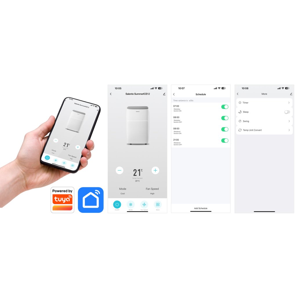 Salente SummerICE12, inteligentná mobilná klimatizácia, 12000 BTU, WiFi+Bluetooth, diaľkové ovládanie.