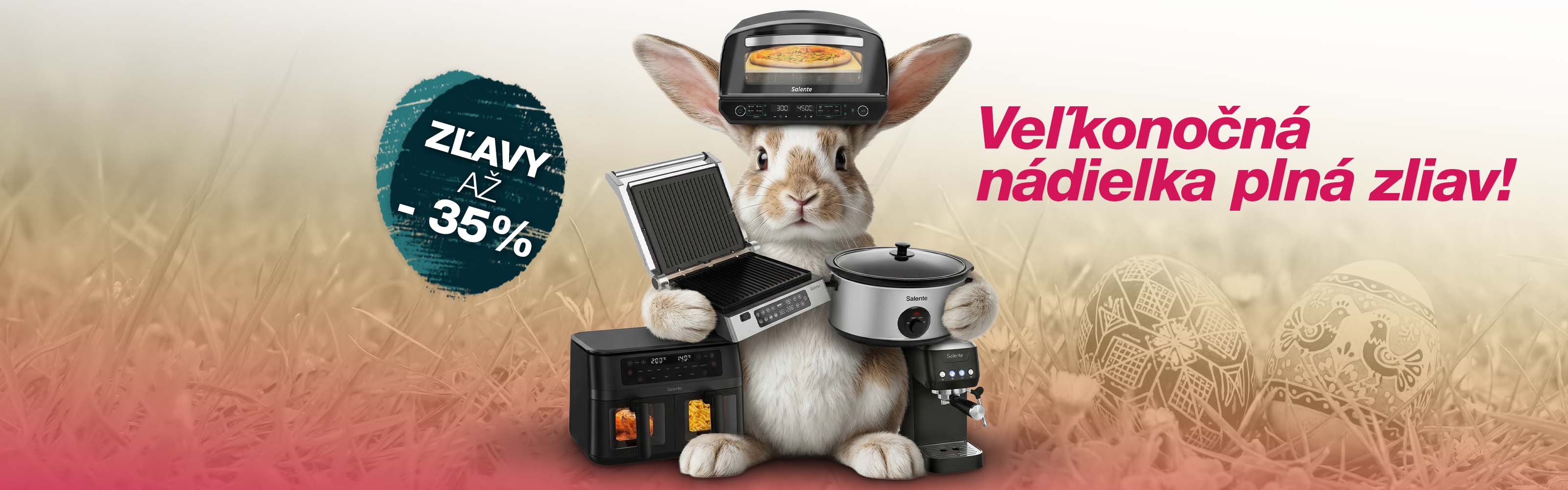 Užite si Veľkú noc 2026 naplno s kuchynskými spotrebičmi Salente! Pripravili sme pre vás atraktívne zľavy až 35 % na vybrané výrobky – od pizza pecí a horkovzdušných fritéz cez espresso kávovary až po kompostéry a indukčné varné dosky. Nakúpte za najlepšie ceny roka!